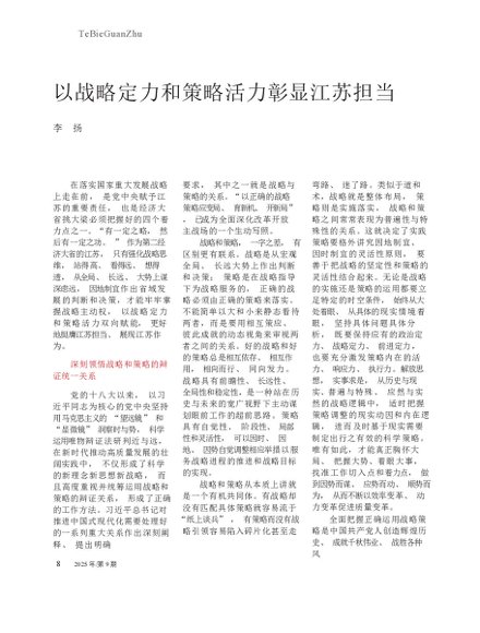 / 以战略定力和策略活力彰显江苏担当_李扬