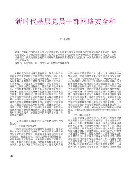 / 新时代基层党员干部网络安全和舆情应对处置能力提升研究_牛成钊
