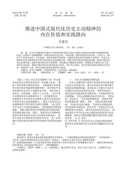 / 推进中国式现代化历史主动精神的内在价值和实践路向_卫慧芳