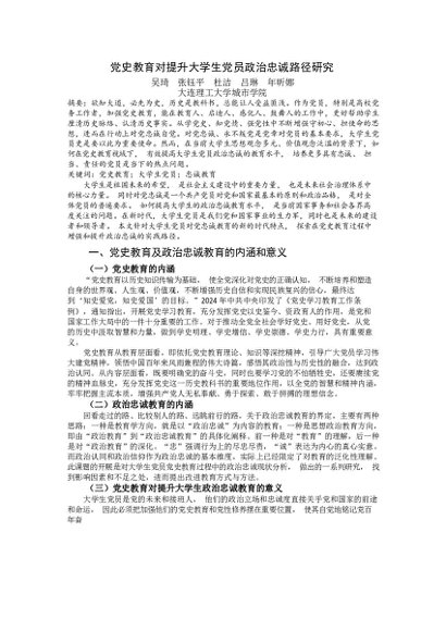 / 党史教育对提升大学生党员政治忠诚路径研究_吴琦