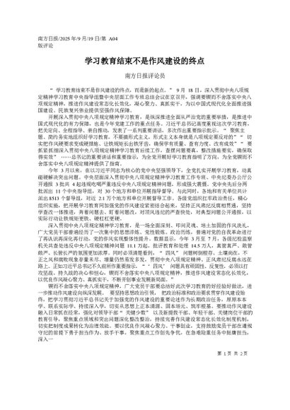 学习教育结束不是作风建设的终点_南方日报评论员