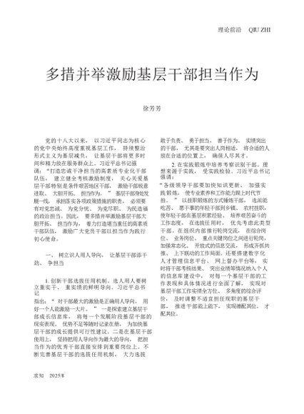 / 多措并举激励基层干部担当作为_徐芳芳