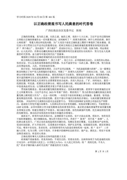 / 以正确政绩观书写人民满意的时代答卷_广西壮族自治区党委书记__陈刚