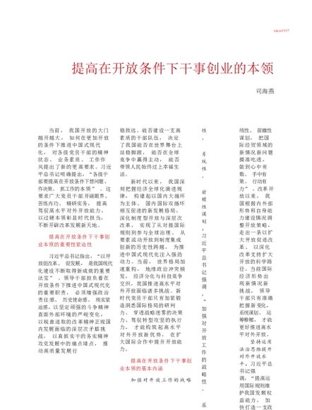 / 提高在开放条件下干事创业的本领_司海燕