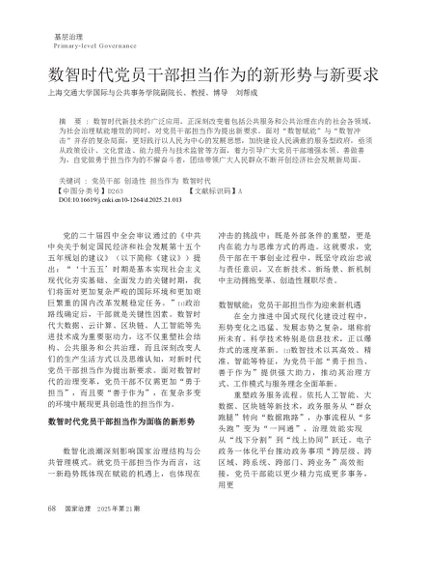 / 数智时代党员干部担当作为的新形势与新要求_刘帮成