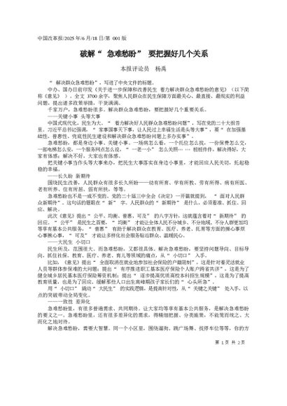 / 破解“急难愁盼”要把握好几个关系_本报评论员__杨禹