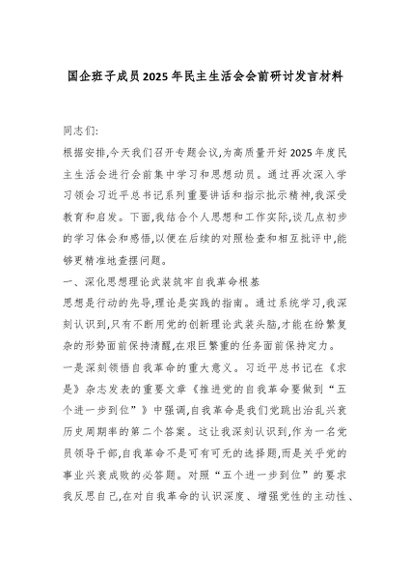 / 组织生活:2025年度│03会前学习:国企班子成员2025年民主生活会会前研讨发言材料