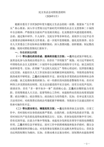/ 组织生活:2025年度│06对照检查:011民主生活会班子成员发言提纲