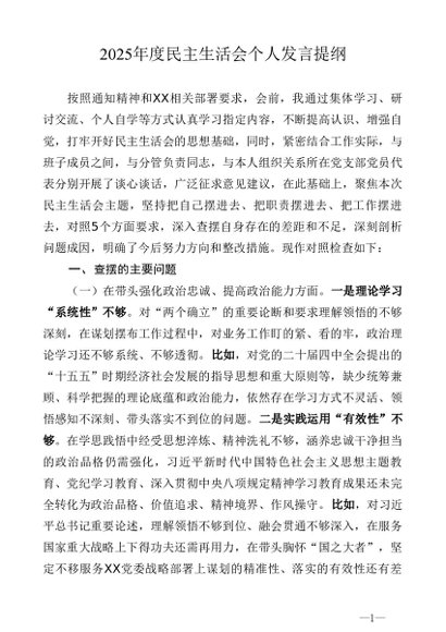 / 组织生活:2025年度│06对照检查:007民主生活会班子成员对照检查发言提纲(原创)