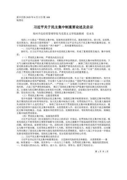 习近平关于民主集中制重要论述及启示_郑州升达经贸管理学院马克思主义学院副教授__任永生