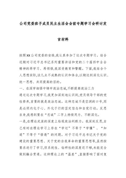/ 组织生活:2025年度│03会前学习:公司党委班子成员民主生活会会前专题学习会研讨发言材料