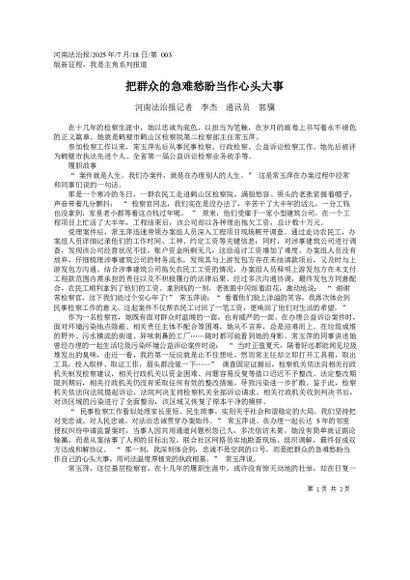 / 把群众的急难愁盼当作心头大事_河南法治报记者__李杰__通讯员__郭骥