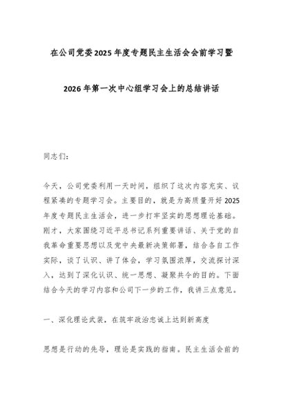 组织生活:2025年度│03会前学习:在公司党委2025年度专题民主生活会会前学习暨2026年第一次中心组学习会上的总结讲话