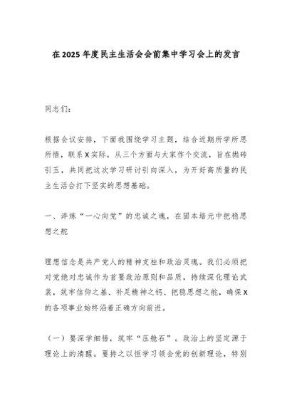/ 组织生活:2025年度│03会前学习:在2025年度民主生活会会前集中学习会上的发言