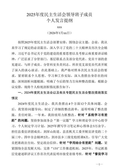 / 组织生活:2025年度│06对照检查:013民主生活会班子成员发言提纲