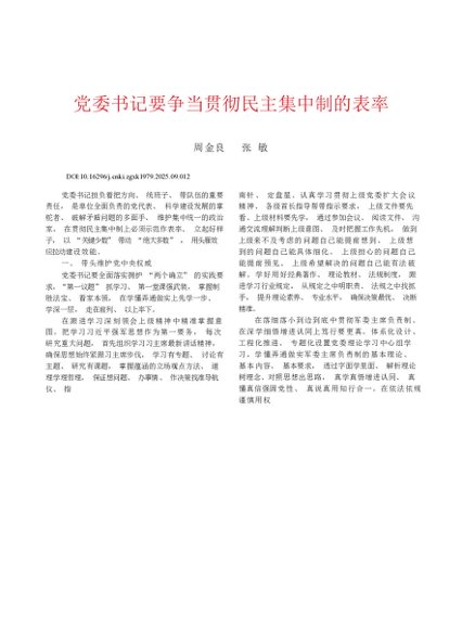 / 党委书记要争当贯彻民主集中制的表率_周金良