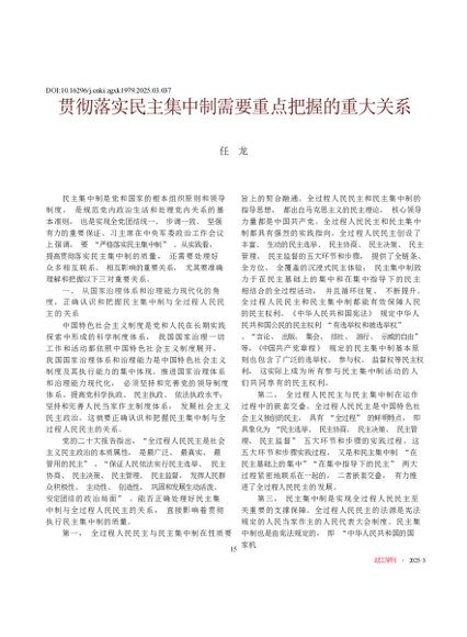 / 贯彻落实民主集中制需要重点把握的重大关系_任龙