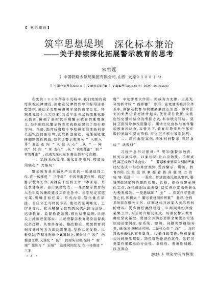 / 筑牢思想堤坝__深化标本兼治——关于持续深化拓展警示教育的思考_宋雪莲