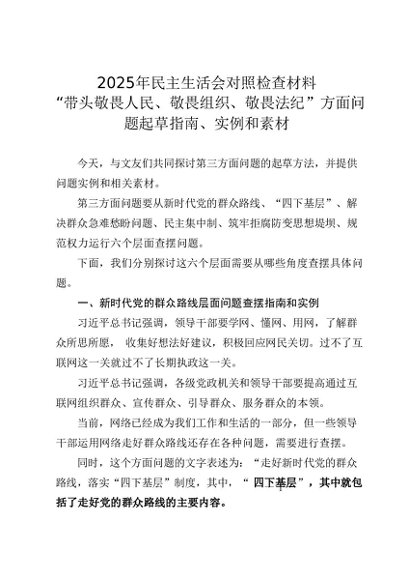 组织生活:2025年度│01写作指引:005民主生活会对照检查材料“带头敬畏人民、敬畏组织、敬畏法纪”方面问题起草指南(原创)