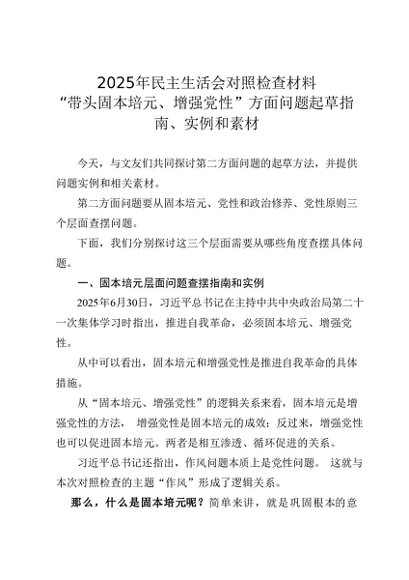 / 组织生活:2025年度│01写作指引:004民主生活会对照检查材料“带头固本培元、增强党性”方面问题起草指南(原创)