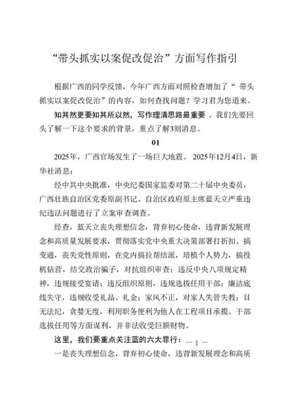 / 组织生活:2025年度│01写作指引:014民主生活会对照检查“带头抓实以案促改促治”写作指引