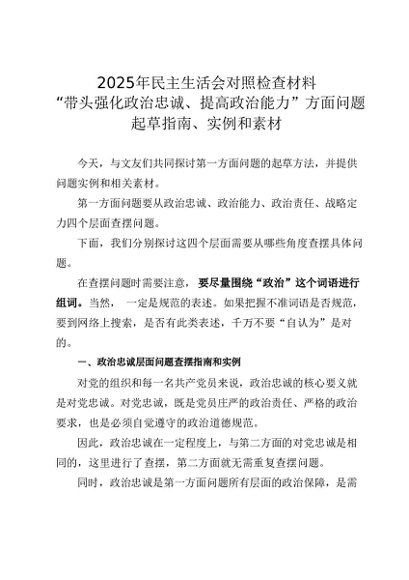 组织生活:2025年度│01写作指引:003民主生活会对照检查材料“带头强化政治忠诚、提高政治能力”方面问题起草指南(原创)