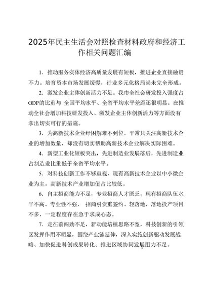 / 组织生活:2025年度│01写作指引:009民主生活会对照检查材料政府和经济工作相关问题汇编(36条)
