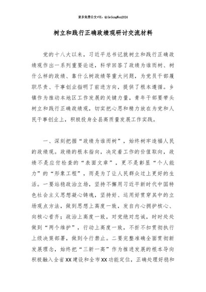 专题教育│2026政绩观│06研讨发言:树立和践行正确政绩观研讨交流材料