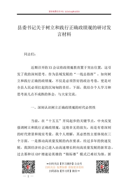 / 专题教育│2026政绩观│06研讨发言:县委书记关于树立和践行正确政绩观的研讨发言材料