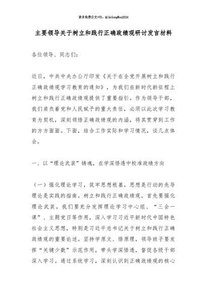 / 专题教育│2026政绩观│06研讨发言:主要领导关于树立和践行正确政绩观研讨发言材料