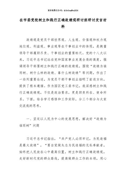 / 专题教育│2026政绩观│06研讨发言:在市委党校树立和践行正确政绩观研讨班研讨发言材料