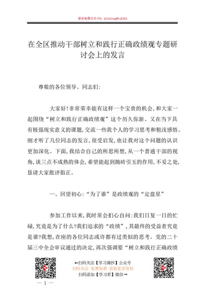/ 专题教育│2026政绩观│06研讨发言:在全区推动干部树立和践行正确政绩观专题研讨会上的发言