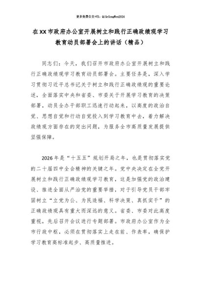 / 专题教育│2026政绩观│03动员部署:在XX市政府办公室开展树立和践行正确政绩观学习教育动员部署会上的讲话