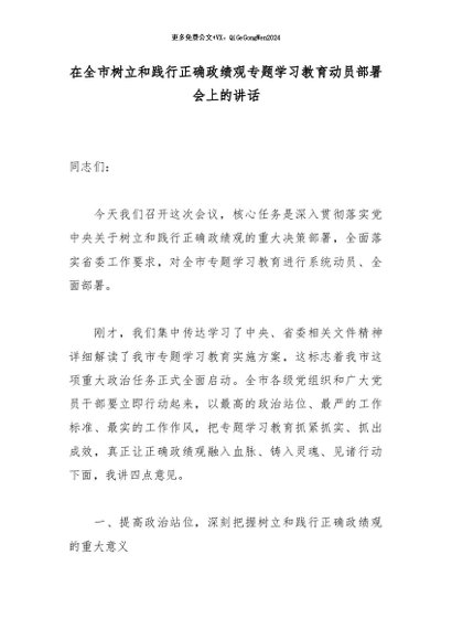/ 专题教育│2026政绩观│03动员部署:在全市树立和践行正确政绩观专题学习教育动员部署会上的讲话
