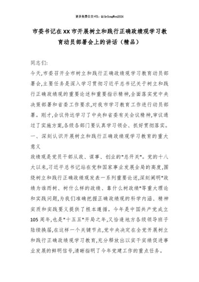 / 专题教育│2026政绩观│03动员部署:市委书记在XX市开展树立和践行正确政绩观学习教育动员部署会上的讲话
