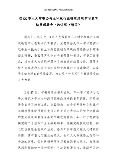 / 专题教育│2026政绩观│03动员部署:在XX 市人大常委会树立和践行正确政绩观学习教育动员部署会上的讲话