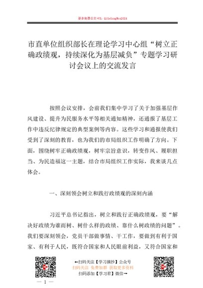 / 2026政绩观│06研讨发言:组织部长在理论学习中心组“树立正确政绩观,持续深化为基层减负”专题学习研讨会议上的交流发言