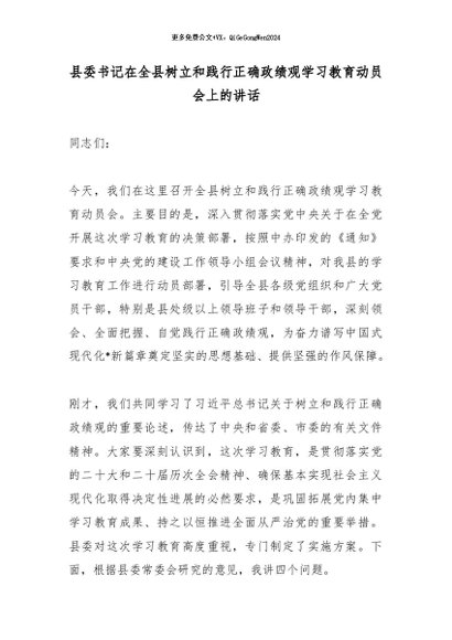 / 专题教育│2026政绩观│03动员部署:县委书记在全县树立和践行正确政绩观学习教育动员会上的讲话