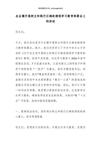 / 2026政绩观│03动员部署:在全镇开展树立和践行正确政绩观学习教育部署会上的讲话