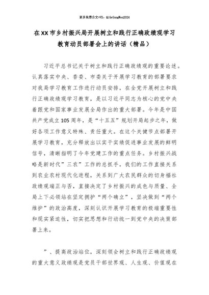 / 2026政绩观│03动员部署:在XX市乡村振兴局开展树立和践行正确政绩观学习教育动员部署会上的讲话