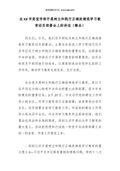 / 2026政绩观│03动员部署:在XX市委宣传部开展树立和践行正确政绩观学习教育动员部署会上的讲话