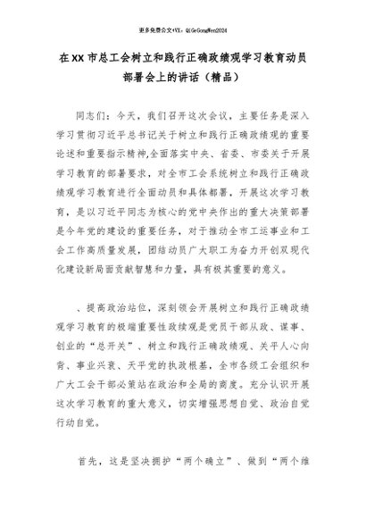 / 2026政绩观│03动员部署:在XX 市总工会树立和践行正确政绩观学习教育动员部署会上的讲话